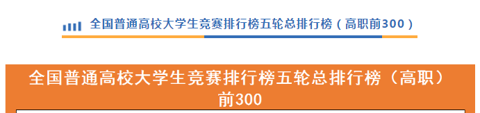 2021年3月22日,中国高等教育学会高校竞赛评估与管理体系研究工作组发布2020全国普通高校大学生竞赛排行榜(高职前300名),我校排位71名;2016-2020年排位76名。