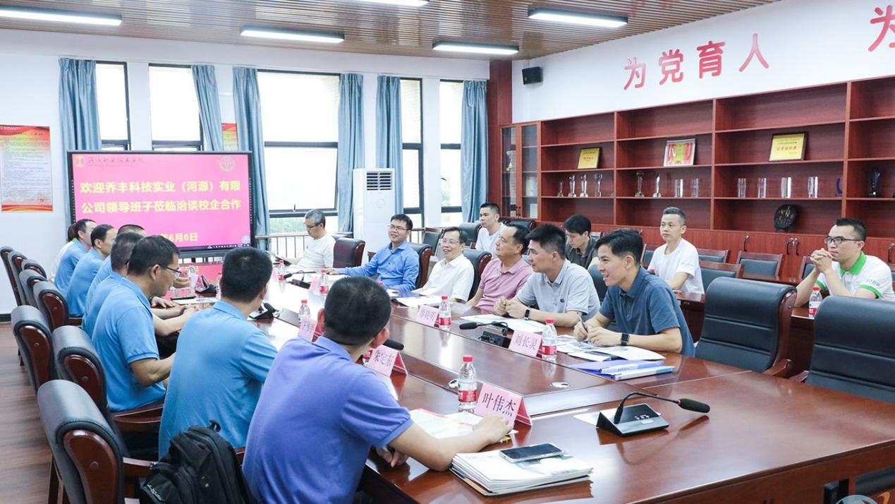 自乔丰科技公司从深圳搬迁到河源高新区,我校第一时间派出合作团队对接公司,双方开始校企合作历程。随后通过书记校长访企拓岗专项活动,校企双方顶层引领,打开了合作共赢局面。