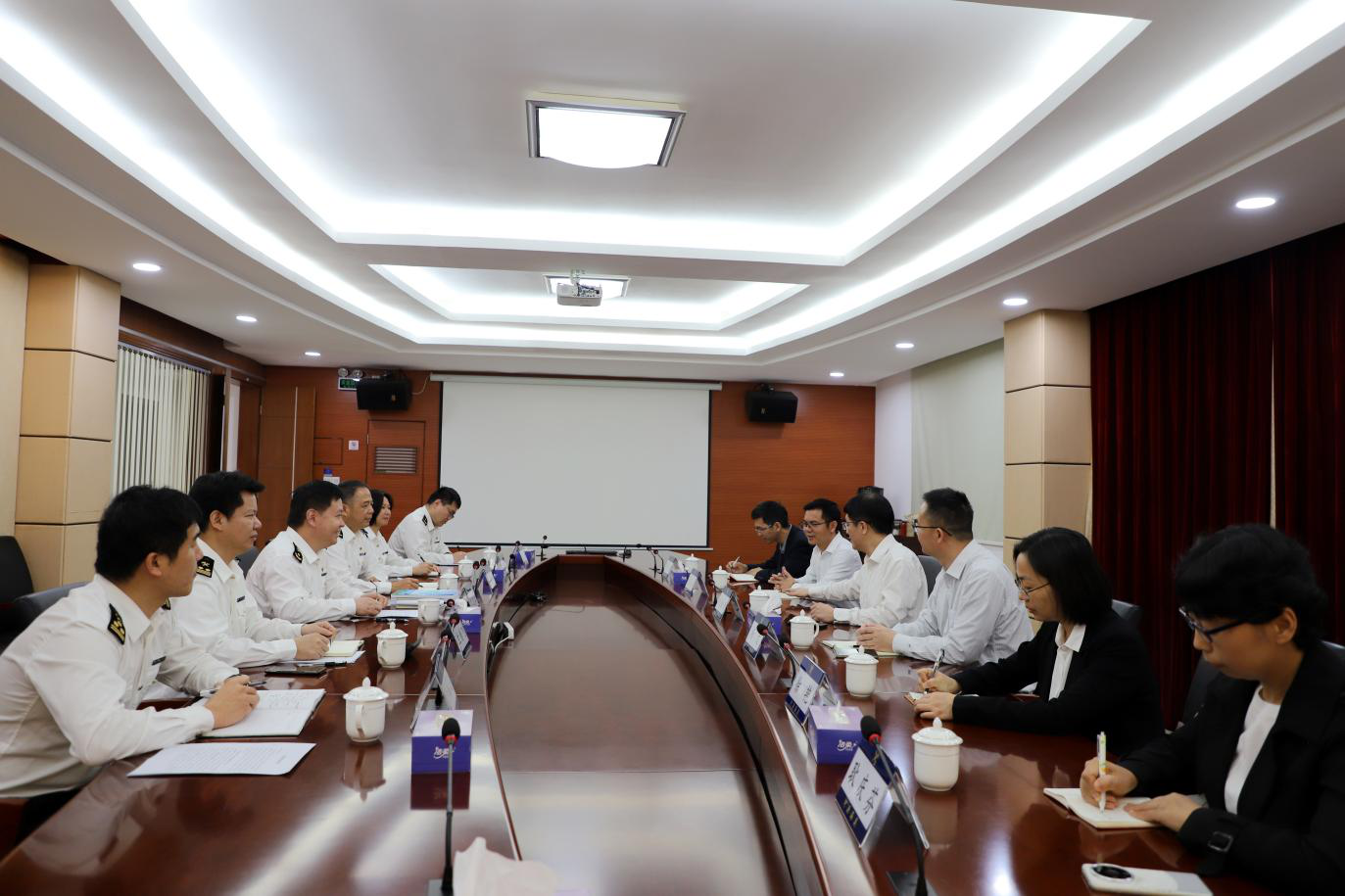 参观结束后,双方开展了座谈。河源海关关长刘志红对刘贻新校长一行的到来表示热烈欢迎。刘志红关长指出,随着制造业的不断升级和发展,高职院校在培养高素质技能人才方面发挥着越来越重要的作用,河源海关希望与开云官方网页版加强合作,在人才培养、科研创新、实践教学等领域开展全方位合作,充分发挥海关的资源优势和学校的教育优势,共同培养适应制造业发展需求的专业人才,为制造强国贡献力量。接着,刘志红关长详细介绍了海关的发展历程、工作现状以及面临的挑战和未来发展趋势。他强调,随着国际贸易的不断发展和全球经济的深度融合,海关工作面临着越来越复杂和多变的环境。河源海关将不断加强自身建设,提升服务水平和监管能力,为地方经济发展保驾护航。刘志红关长还从服务发展、干部能力建设、综合保障三个方面阐述了河源海关的主要工作,他表示,河源海关将积极履行职能职责,为地方经济发展提供优质服务和有力保障。