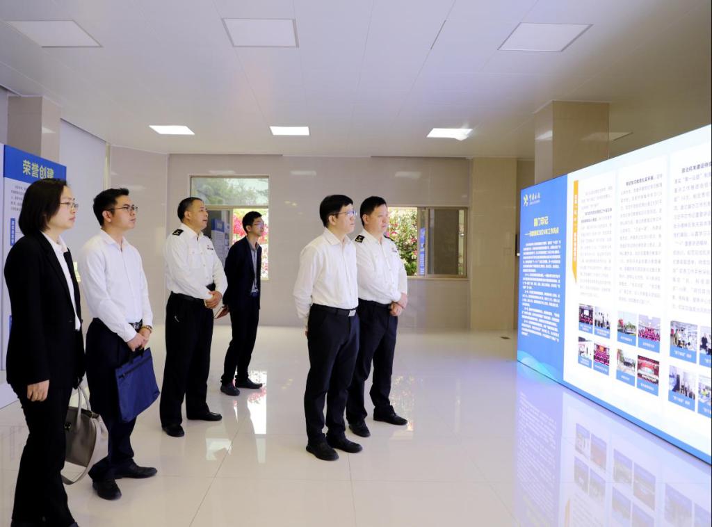 随后,一行人在海关工作人员的引导下,认真听取了海关工作展板讲解,从河源海关的历史沿革、组织架构、荣誉创建以及国门印记-河源海关2024年工作亮点等多个维度,全面展示了河源海关在促进地方经济发展、维护国门安全、优化营商环境等方面所发挥的重要作用。通过讲解,学校一行对海关工作有了更为系统、全面的认识,为后续探讨双方合作方向奠定了基础。