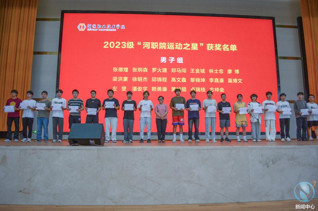 紧接着,运动员代表、裁判员代表先后上台进行宣誓,他们承诺将严格遵守比赛规则,尊重对手,尊重裁判,展现良好的体育道德风尚。随后学校对过去一个学期中积极参与“百万公里·健康长跑”方案涌现出的“河职院运动之星”进行了表彰。姚家芳、王小宁副校长分别为2023级运动之星男子组、女子组颁奖;钟茂开副书记为2024级运动之星颁奖。