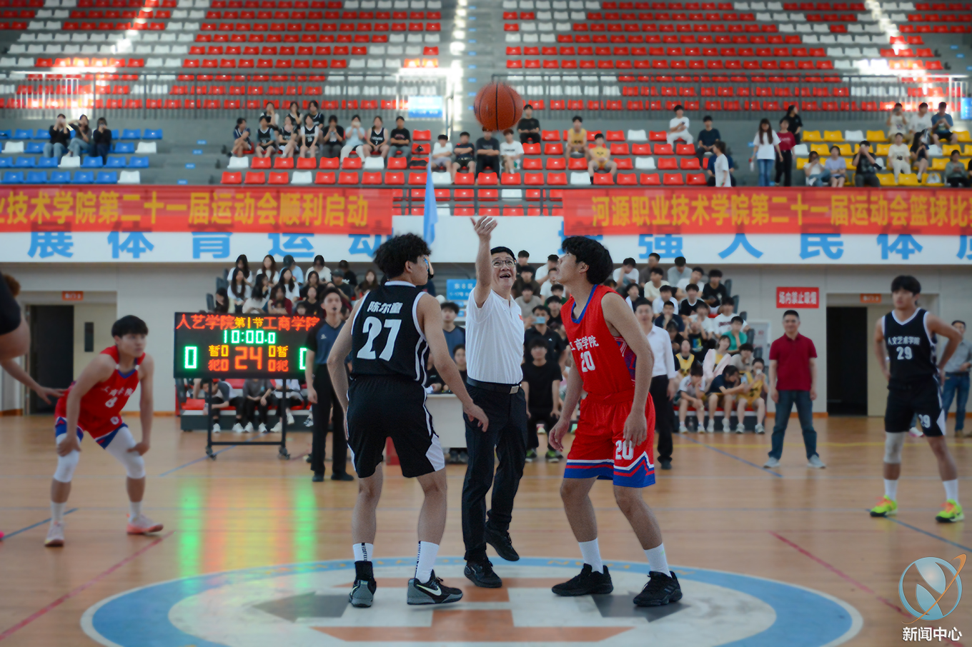 最后,刘贻新校长隆重敲锣,宣布开云官方网页版第二十一届运动会正式启动并为本次篮球比赛开球。