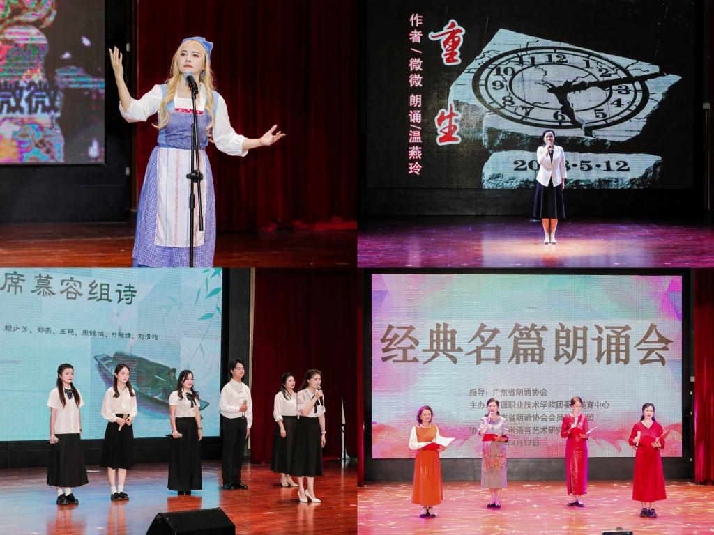 启动仪式后,举行经典名篇朗诵会。此次朗诵会由广东省朗诵协会指导,我校团委、美育中心和广东省朗诵协会艺术三团成员联合主办,河源市语言艺术研究会协办。活动以朗诵经典名篇为核心,融合舞蹈、音乐、古典艺术等多种形式,为观众呈现了一场精彩纷呈的文化盛宴。