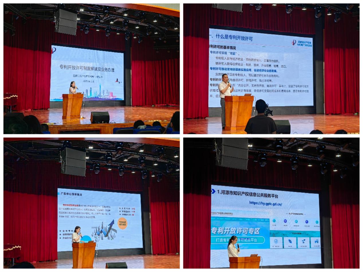 2025年5月28日,由省市场监督管理局(知识产权局)指导,省知识产权保护中心、河源市市场监管局(知识产权局)联合主办,河源市农业知识产权运营服务中心和我校承办的“河源农业领域专利转化对接活动”在艺术楼演播厅成功举办。省市场监管局知识产权促进处副处长吴勇、河源市市场监管局二级调研员伍志勇、我校副校长袁光华出席活动。河源市市县两级知识产权管理部门代表,相关高校院所、农业领域企业及相关运营服务机构代表近160人参加了活动。