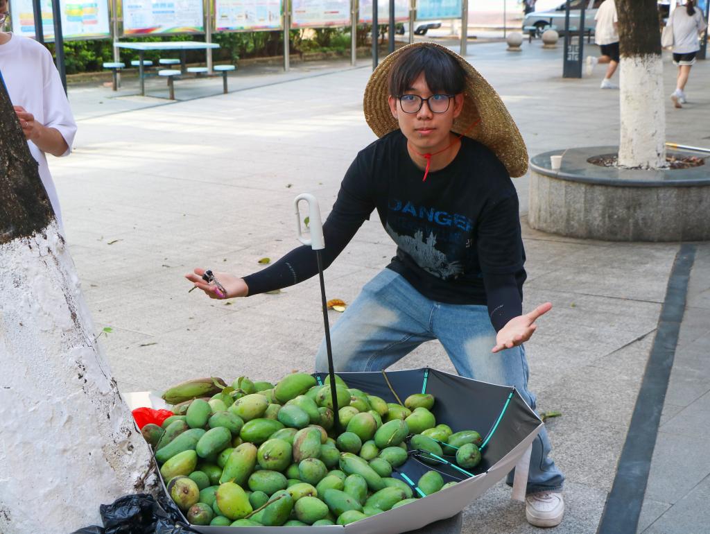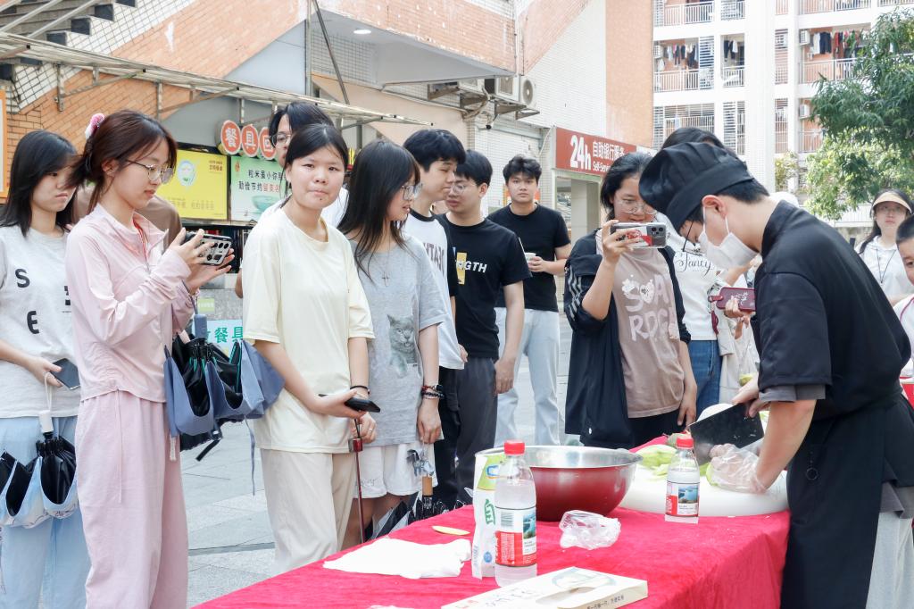 活动伊始,陈晓峰书记就采摘芒果的注意事项进行说明,随后,姚家芳副校长宣布开云官方网页版首届芒果节开幕。活动中,同学们利用手中自制的摘芒果“神器”,前往各学院划定区域进行采摘。在主会场,烹饪专业的同学为路过的师生及校内工作人员提供腌制好的芒果爽,并开展现场腌制教学活动;大学生艺术团声乐队的同学演唱歌曲,现场气氛热烈。