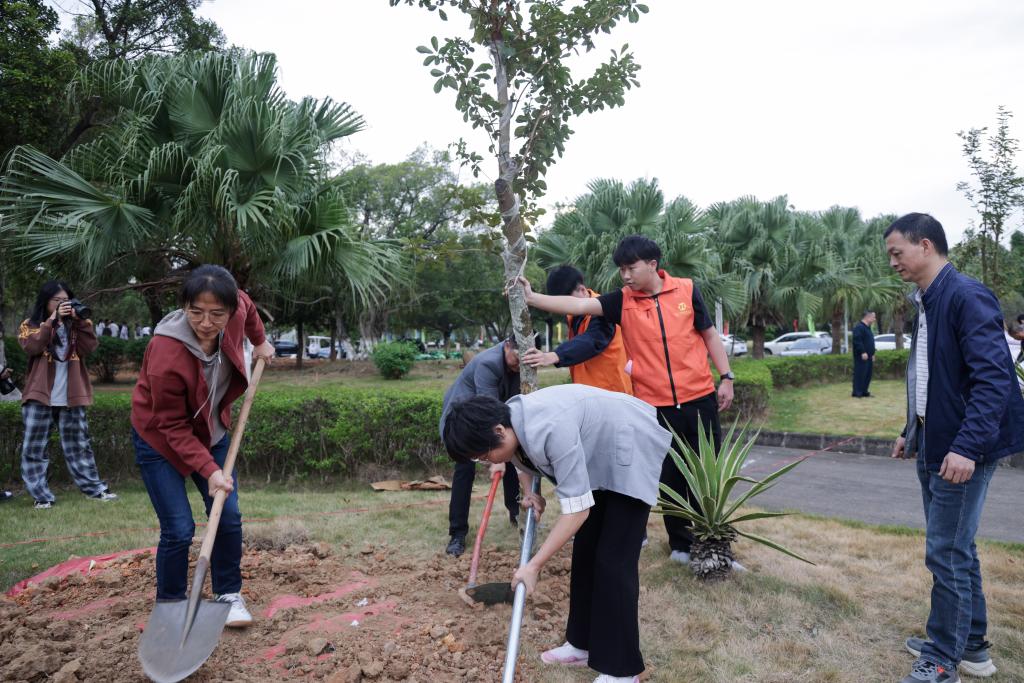 仪式结束后,全体人员移步至种植区,共同参与植树活动,亲手种下象征希望与未来的树苗。“情系河职・绿满校园”不仅是一次物质的馈赠,更是一次精神的传承。河职院将继续与社会各界携手,推动绿色校园建设,培育更多优秀人才,共筑美好未来。