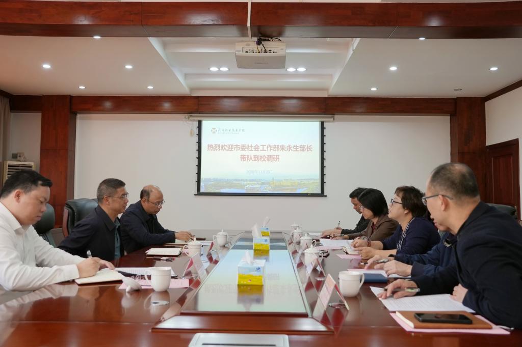 11月25日,市委社会工作部部长朱永生率队莅临我校就河源社会工作学院的运行与发展情况进行专题调研。调研组成员包括市委社会工作部副部长彭志波、办公室主任李进财。姚家芳副校长,继续教育学院、河源社会工作学院李文萍院长以及相关人员参加了调研座谈会。调研座谈会由朱永生部长主持。