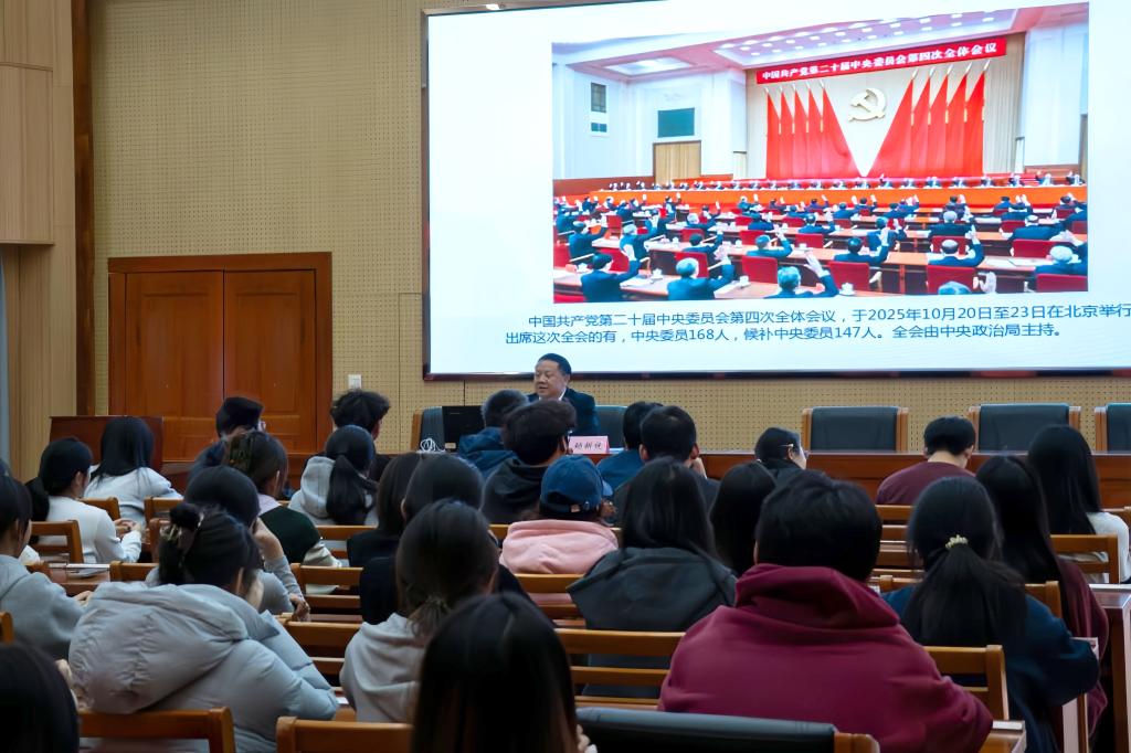 在解读《建议》的核心要义时,赖部长详细分析了“十四五”时期我国经济社会发展取得的重大成就,阐述了中央对“十五五”时期国内外形势的科学判断,解读了“十五五”时期经济社会发展的指导思想、基本原则、主要目标以及十二个方面的重点战略任务。他特别指出,《建议》通篇贯穿着高质量发展的主题,凸显了教育、科技、人才在现代化建设中的基础性、战略性支撑作用,并对建设强大国内市场、构建高水平社会主义市场经济体制、繁荣发展社会主义文化、保障和改善民生、统筹发展和安全等作出了全面部署。赖部长的讲解逻辑清晰、重点突出、数据详实,既有理论高度,又紧密联系当前世界格局、国家发展态势以及高校宣传思想工作的实际,为与会师生带来了一场内容丰富、见解深刻的认知洗礼。
