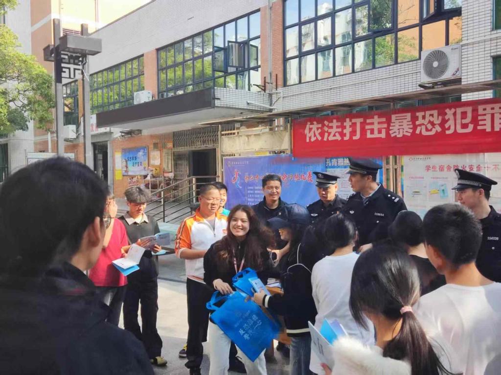 活动现场,工作人员面向师生派发宣传单、宣传品等,开展识恐(诈)、防恐(诈)、反恐(诈)知识宣传教育,解读《中华人民共和国反恐怖主义法》和《中华人民共和国反电信网络诈骗法》的精神和内涵,以典型案例讲解如何应反恐、反诈及其方法,详细回答现场师生提出的相关问题。