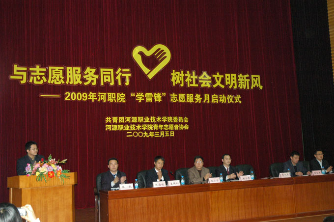 3月5日下午,由共青团开云官方网页版主办,青年志愿者协会协办的“学雷锋”志愿服务月启动仪式在图书馆学术报告厅揭开了帷幕。学校纪委、党办、学工处长、校团委、各院系及团市委学少部、市志愿者联合会相关负责人出席了仪式。除此以外,出席这次启动仪式的嘉宾有河源笔架山风景区、市血站中心相关人员。