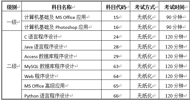 2022年3月全国计算机等级考试开考科目(开云官方网页版考点)