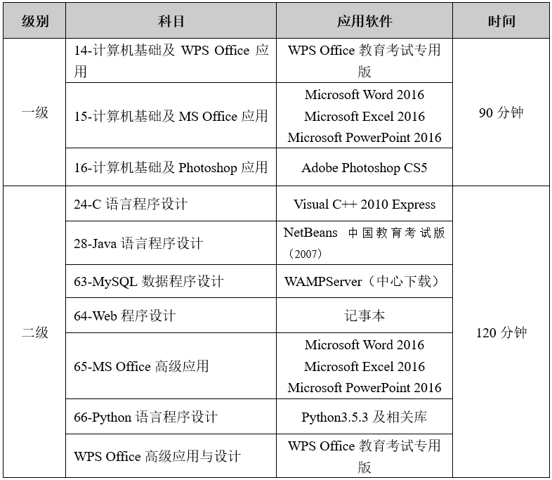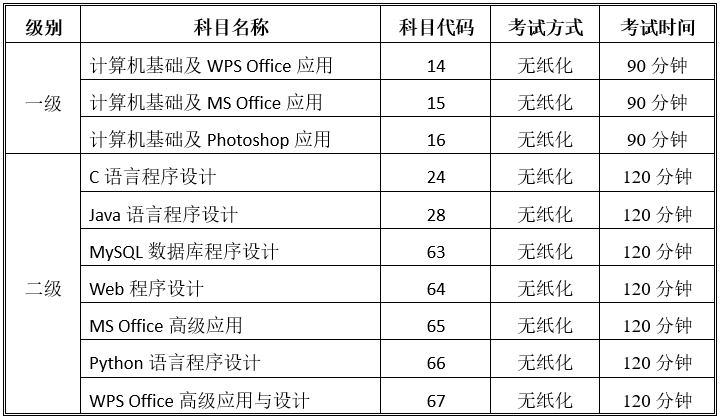 2024年9月全国计算机等级考试开考科目(开云官方网页版考点)