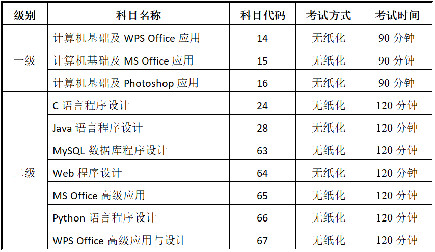 2025年9月全国计算机等级考试开考科目(开云官方网页版考点)