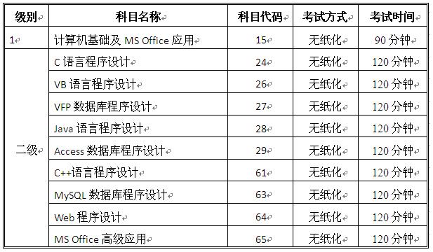 2015年下半年全国计算机等级考试开考科目(开云官方网页版考点)