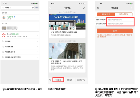 (二)缴交考试费:5月4日前,我校将通过本校招生信息网公布报名资格审核结果名单,通过报名资格审核的考生,需于5月6日至5月9日期间通过“河源非税”微信公众号缴交考试费,缴费方法: