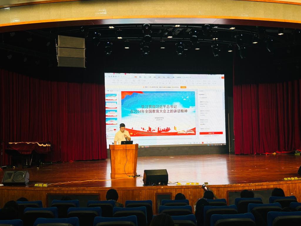 会上,杜伟祥院长首先回顾了习近平总书记在全国教育大会上的重要讲话内容。他指出,教育是强国建设、民族复兴之基,建成教育强国是近代以来中华民族梦寐以求的美好愿望,也是实现中国式现代化、全面推进强国建设和民族复兴伟业的先导任务、坚实基础、战略支撑。杜院长强调,全体教职工要深刻领会总书记的重要讲话精神,紧紧围绕立德树人这一根本任务,不断提升教育教学质量,为培养德智体美劳全面发展的社会主义建设者和接班人贡献力量。