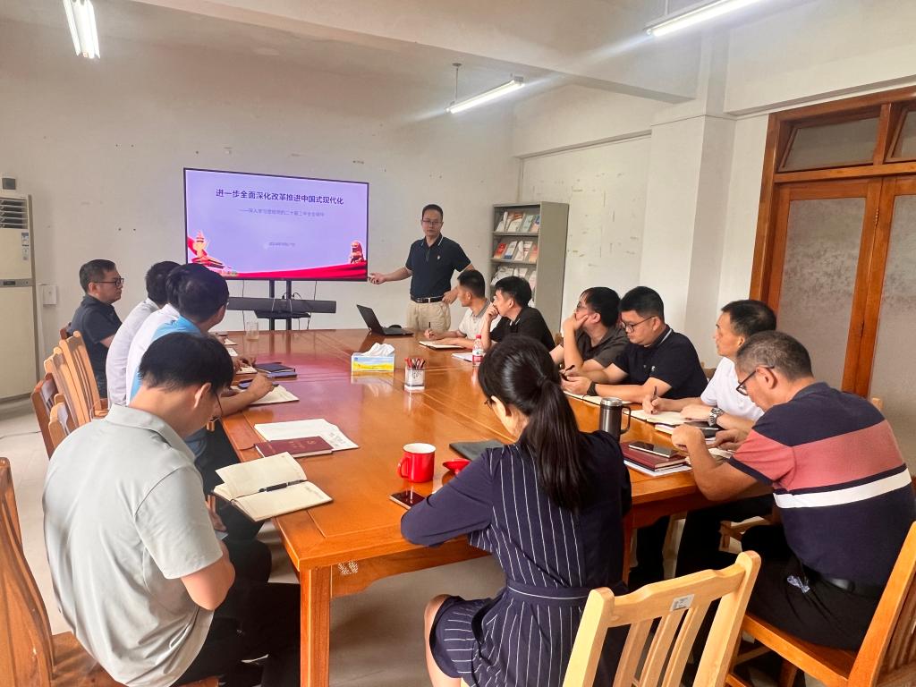 为全面深入学习贯彻党的二十届三中全会精神,切实把思想和行动统一到党中央的决策部署上来,按照学校党委工作部署要求,9月27日下午,信息中心在中心会议室举行学习贯彻党的二十届三中全会精神宣讲会,中心党支部书记杨文同志作专题宣讲。信息中心全体人员参加宣讲会。
