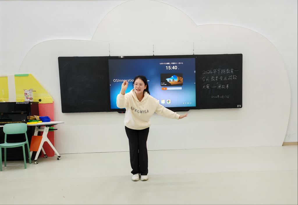 为了积极备战2025年世界职业院校技能大赛广东省选拔赛,全面提升我校学前教育与早期教育专业学生的专业技能与综合素质,2024年12月17日,一场别开生面的2024年学前教育和早期教育专业学生技能大赛在我校艺术楼隆重举办。