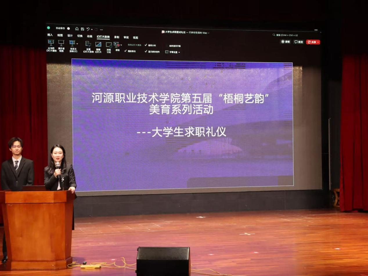 为助力职场新人与求职者提升礼仪素养、打造良好求职形象,2025年10月28日,我校美育中心于艺术楼演播厅成功举办第五届“梧桐艺韵”美育系列活动——求职礼仪讲座。本次讲座由池潇潇老师主讲,趣味实用的讲座吸引了众多学生参与。