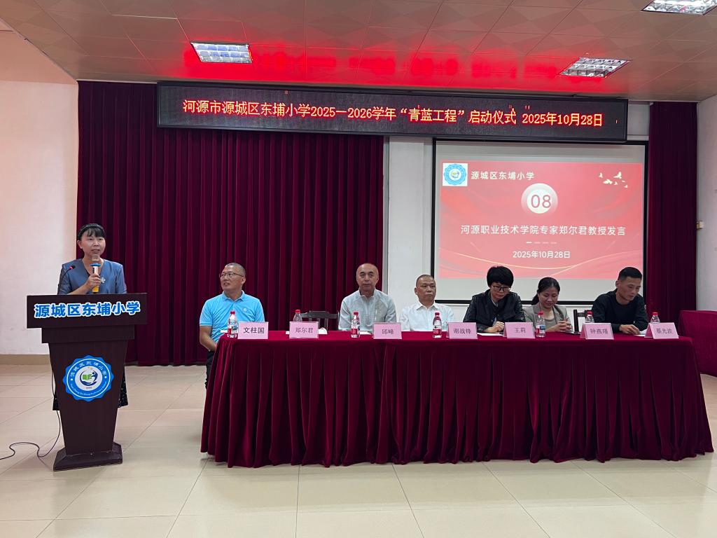 2025年10月28日下午,我院与源城区东埔小学共同举行了东埔小学 “青蓝工程”师徒结对活动启动仪式。我院党委副书记谢战锋及邱锋、郑尔君、王莉、钟燕瑾等4名专家教师参与活动。