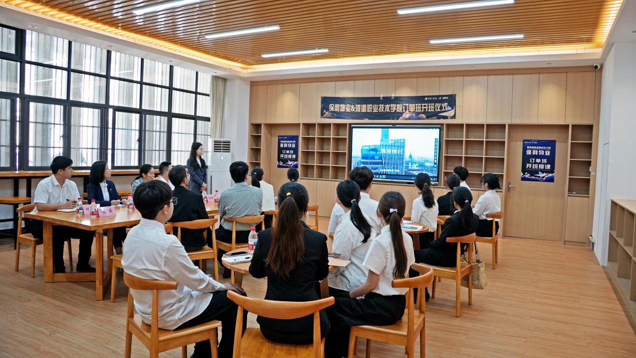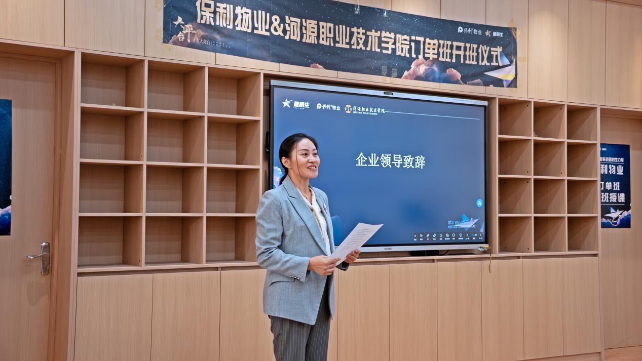 2025年11月6日,我校在工商管理学院数字物业与社区体验中心举行第二届“星辰生订单班”开班仪式。工商管理学院负责人张颖和现代物业管理专业教师,保利物业粤湾公司副总经理谭有珍、党群人力部门经理陈路生等企业代表,以及第二届订单班学员参加开班仪式。