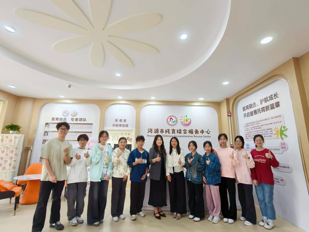 作为河源市妇幼保健院主办的专业化托育服务平台,河源市托育综合服务中心整合了优质医疗资源与托育服务功能,其成立紧扣“幼有所育”国家战略,呼应了区域对高品质托育服务的迫切需求。此次合作是我校早期教育专业深化产教融合改革的重要举措,更是对“医育结合”新型育人模式的创新探索——依托妇幼保健院的医疗资源优势,结合专业在早期教育领域的教学积淀,将实现医疗护理与早期教育的深度协同。活动当天,10名早期教育专业学生受邀走进中心参与实践,通过亲子游戏指导、感统训练活动体验、育儿知识咨询等形式,与现场幼儿及家长展开互动,将课堂所学转化为实践服务能力,获得中心领导及家长们的一致认可。