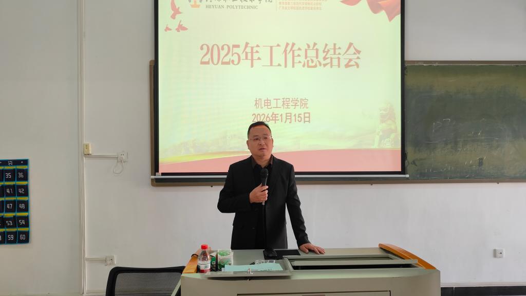 1月15日上午,机电工程学院在实训楼D508召开2025年度工作总结大会。学校党委副书记、纪委书记钟茂开莅临指导,全院教职工参会,学院党委副书记黄亮主持会议。