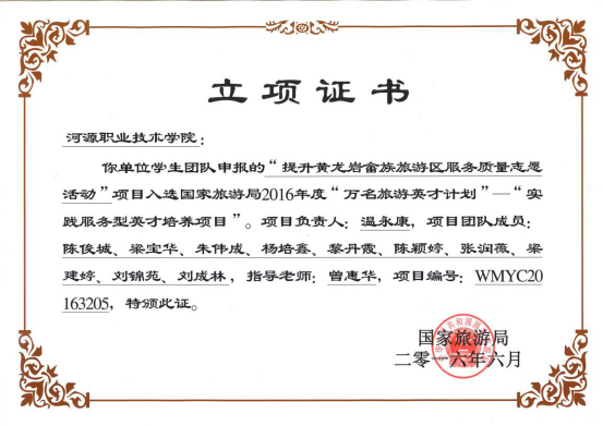 2016年11月5日,酒店管理专业曾惠华老师带领46位学生志愿者到黄龙岩畲族旅游区开展提升服务质量志愿者活动,受到景区吴辉生总经理及中高层管理人员的盛情接待和积极配合。